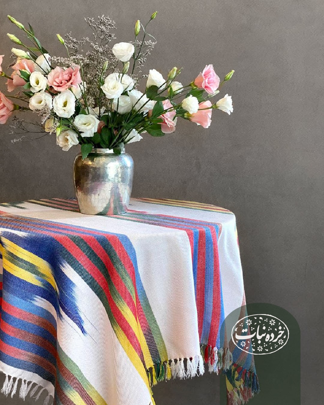 Tags: الیاف طبیعی, ایکات, خرده نبات, رومیزی, رومیزی دارایی, رومیزی نخی